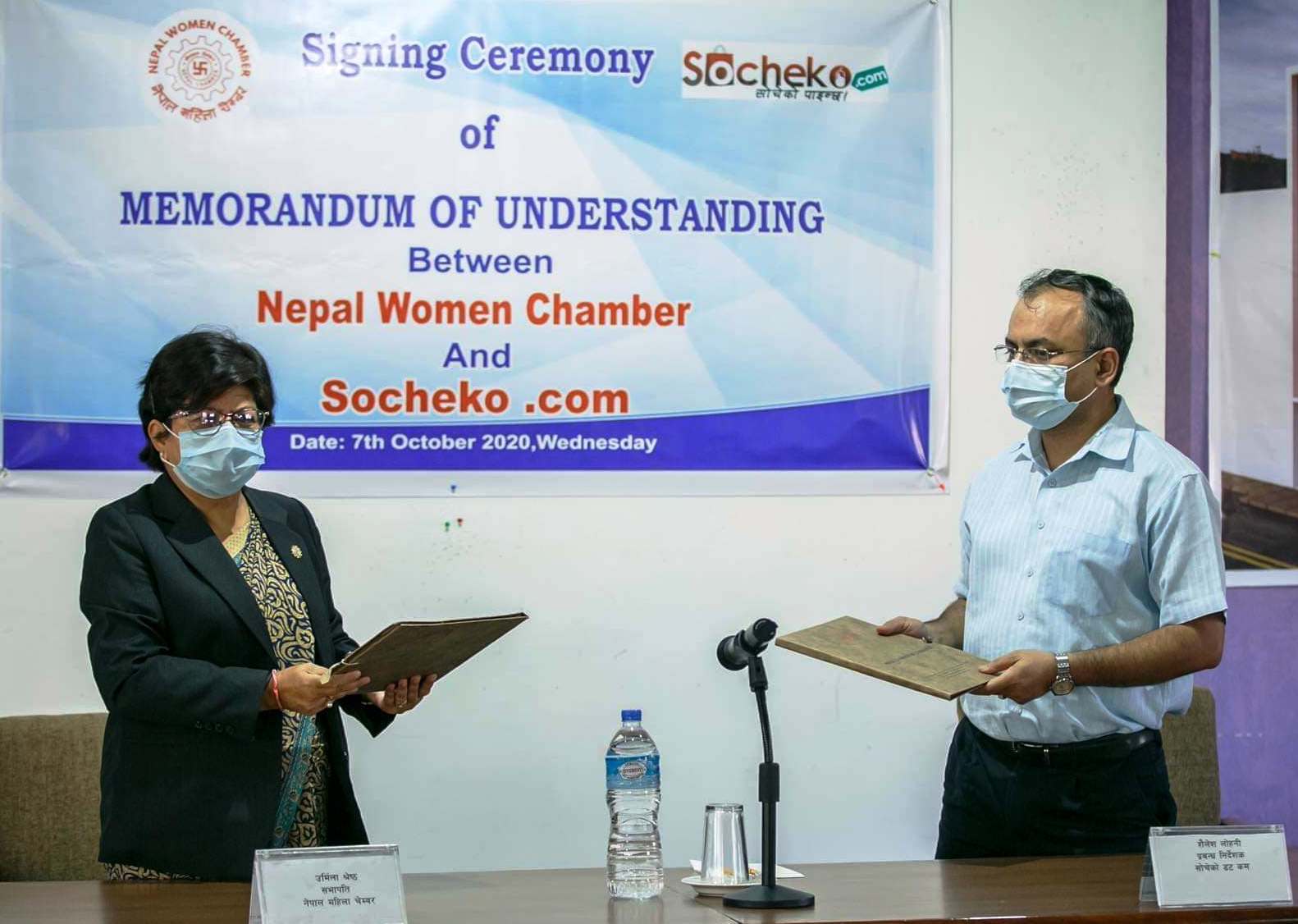 उक्त सम्झौता पत्रमा नेपाल महिला चेम्बरको तर्फबाट अध्यक्ष उर्मिला श्रेष्ठ र सोचेको डट कमका तर्फबाट प्रवन्ध निर्देशक शैलेश लोहनीले समझदारी पत्रमा हस्ताक्षर गरे । सम्झौता पस्चात आफनो धारणा राख्दै नेपाल महिला चेम्बरका अध्यक्ष उर्मिला श्रेष्ठले अनलाईनको बढ्दो प्रयोगको साथै चेम्बरसंग आवद्ध महिला उद्यमीबाट उत्पादित सामानको ब्यापार अभिवृद्धि गर्न सोचेको डट कम पोर्टल माध्यम उपयोगी हुने विश्वास व्यक्त गर्दै एकीकृत रुपमा पोर्टलबाट उत्पादित सामान विक्रि वितरण गर्न लागिएको जनाईन् । साथै, उनले कोभिड–१९ बाट श्रृजित समस्याबाट ब्यापारीक क्षेत्रमा देखिएको शिथिलतालाई हल गर्दै अर्थतन्त्रलाई चलायमान बनाउन यो व्यवस्था प्रभावकारी हुने अपेक्षा लिईएको उनले बताईन् ।
