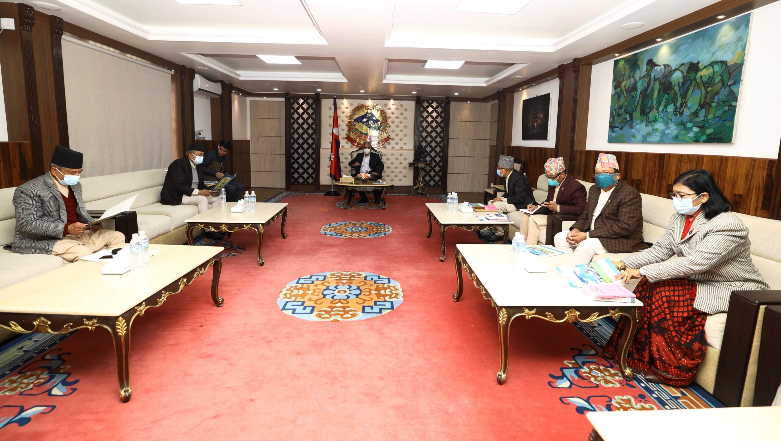 बालुवाटारमा प्रधानमन्त्री देउवा र पूर्वप्रधानमन्त्रीद्वय ओली र प्रचण्डबीच बैठक सुरु